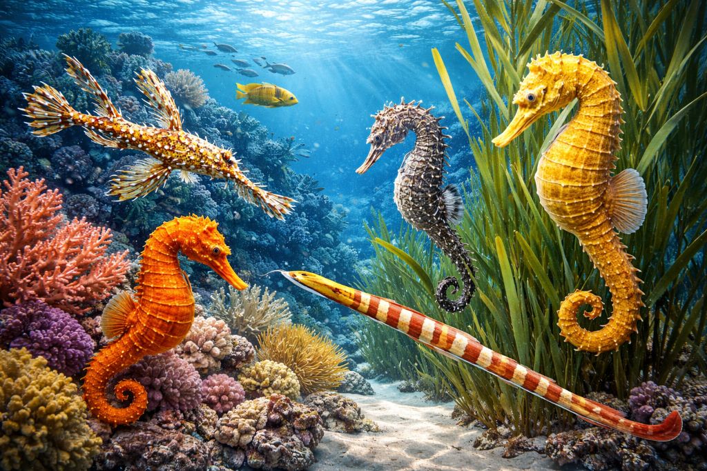 Игольчатые и конёобразные — это пример того, как эволюция может пойти по совершенно неожиданному пути. Медленные, хрупкие на вид, но прекрасно приспособленные, морские коньки доказывают: в океане выживает не самый быстрый, а самый подходящий к своей среде.