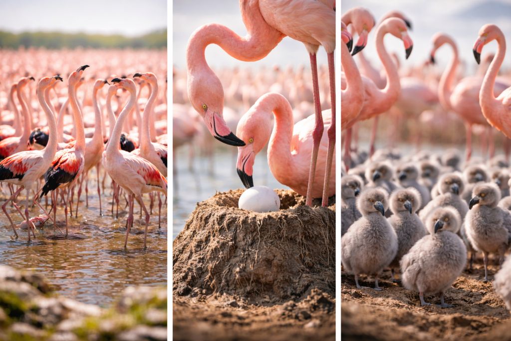 Размножение фламинго основано на коллективности и точной синхронизации. Гнездо-«башенка» и жизнь в колониях позволяют успешно выводить потомство в сложных и нестабильных условиях.