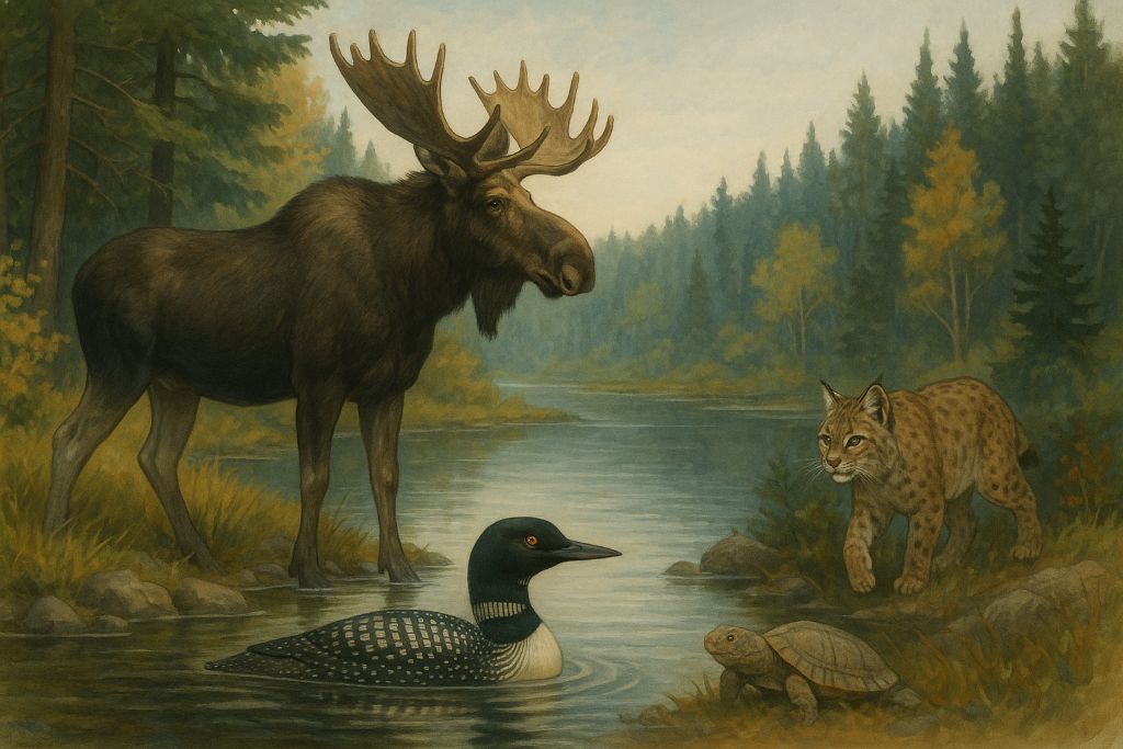 Озёра Уиннипосуоки, Чекоруа и десятки меньших водоёмов — идеальная среда для американских выдр, бобров, ондатр и ручьевой форели.
